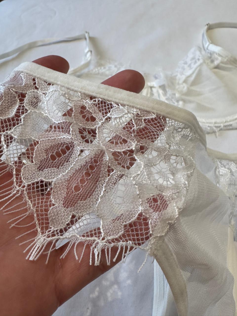Delicada blonda, con detalles de transparencia en su encaje, ideal para resaltar tu belleza y sensualidad sin robarte tu comodidad.