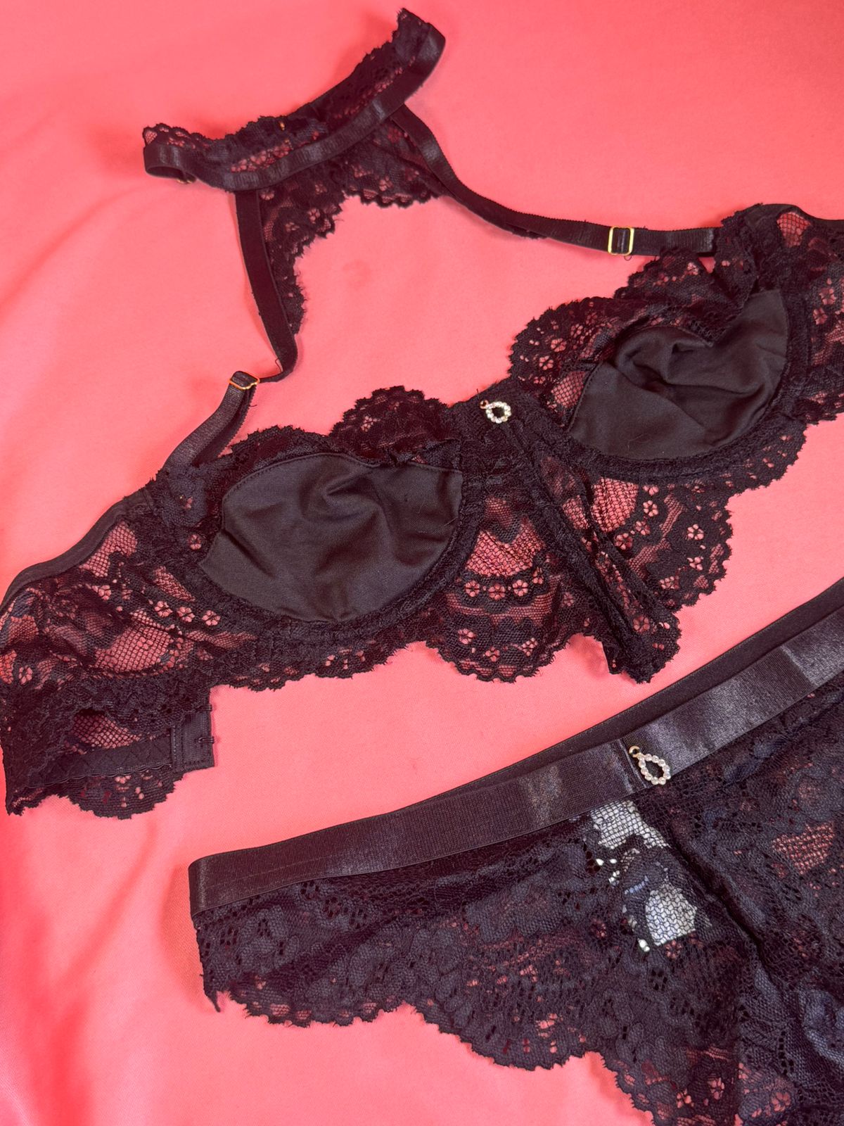 Hermoso conjunto con delicados bordes de blonda, que acompañaran tu día a día haciéndote lucir espectacular!