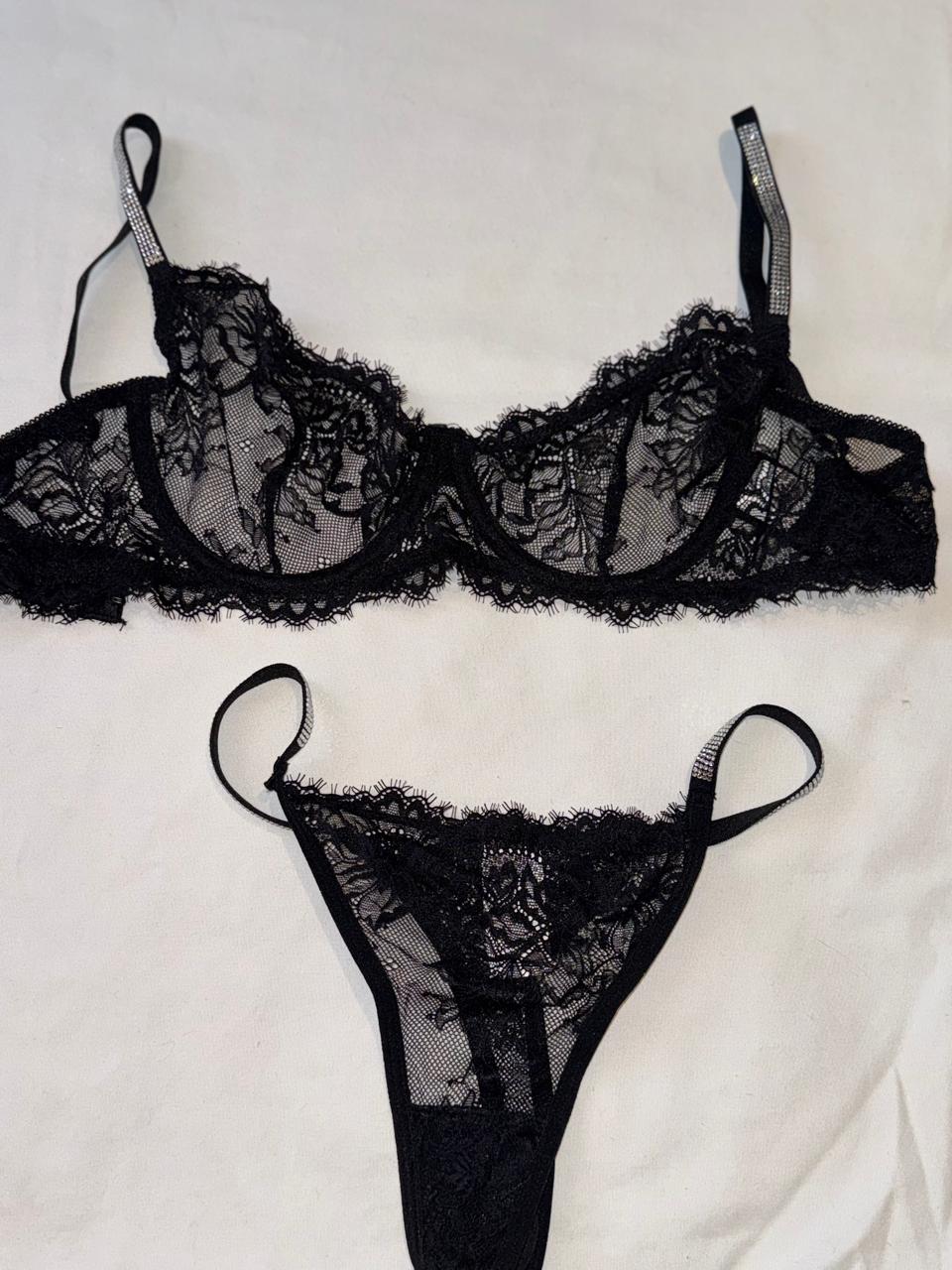 Hermoso conjunto de blonda con detalles de brillos en sus tirantes. te hará lucir espectacular sin robarte tu comodidad.